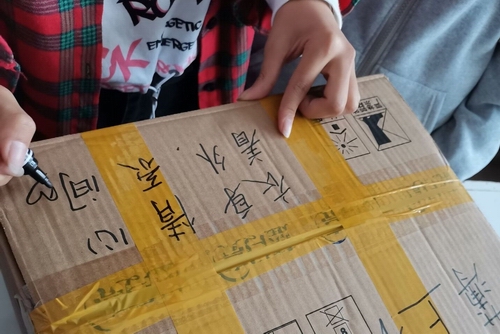 接着,志愿者根据衣物类别的进行了分类整理打包并精心设计了相应的暖心话语。他们在外套的包装箱上写上“虽然套在外面,但是暖在心中”;在毛衣包装箱上写上“温暖的不是冬天,是有毛衣的每个你!”
