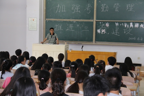 会上,学院主管考勤工作的辅导员赵欣用详实的数据说明了“三风”建设以来考勤工作取得的成绩,也指出了逐渐显现出的深层次问题,就上课考勤方法、请销假制度、旷课行为处理办法等进行了解释和重申。
