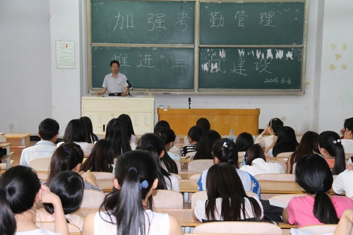 2016年6月3日,学院在B104召开考勤工作会议,继续推进“三风”建设。学院各专业班班长、团支书、学习委员共93人参加会议。学院党委副书记、副院长李宝文出席会议并讲话。